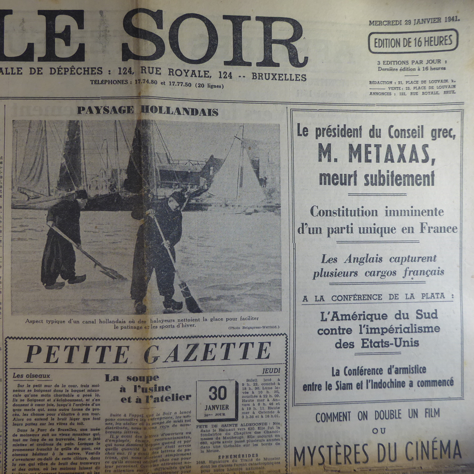 Ici encore le soir jeunesse du 30 janvier est sorti dans le journal du 29 janvier, je n'ai malheureusement aucune indication à propos de l'édition de province.