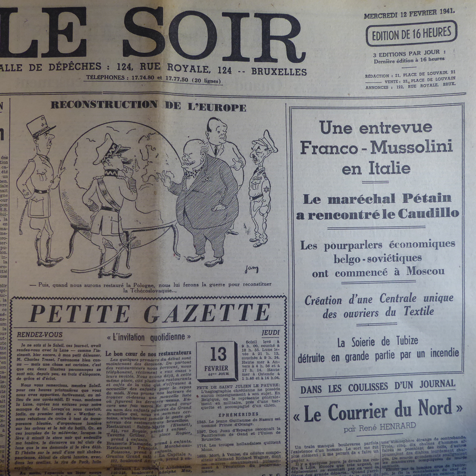 Ici encore le soir jeunesse du 13 février est paru dans le journal du 12 février, je n'ai malheureusement aucune indication à propos de l'édition de province.